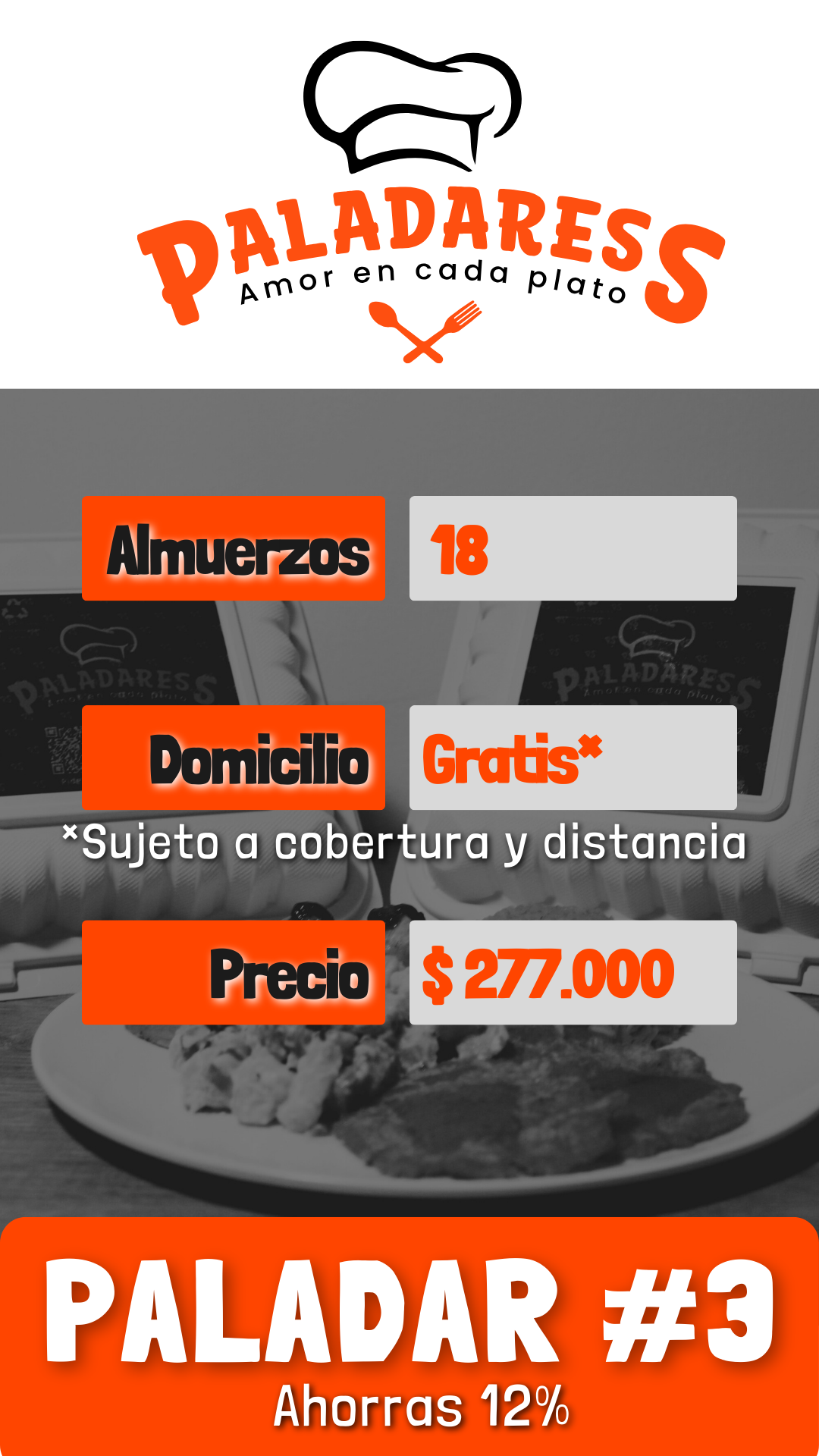 El cliente puede comprar su almuerzo del día o un plan por 6, 12, 18 o 24 almuerzos